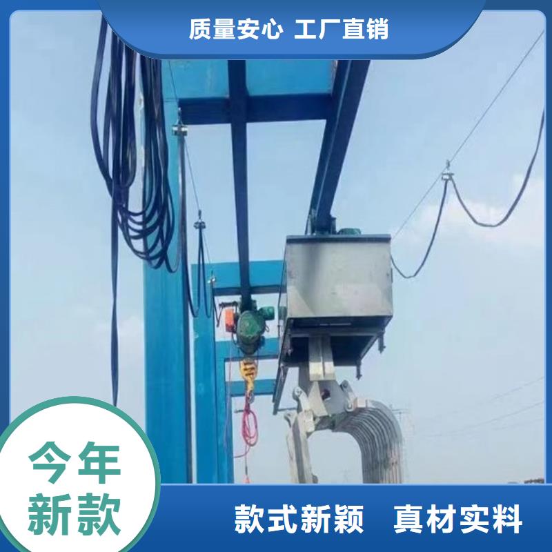 唐山滦南清污机抓斗式清污机结构及工作原理: 主要由卷扬机构、钢丝绳、耙斗、钢丝绳滑轮、耙斗张合装置、机械过力矩保护、移动行车、地面固定式轨道及移动行车定位装置组成。整机定位清污动作、耙斗升降、耙斗张合、耙斗污物刮除等与固定安装的钢丝绳牵引耙斗式格栅除污机相同,唯有上机架与下机架分体,上机架全部设在移动行车上。其工作原理为:除污时,通过行程开关控制,使机架移动到需清污的格栅位置,当上下机架对位准确后,耙斗才可顺利下放除污。对于宽幅格栅,除污机除污完毕移动一个齿耙有效宽度,继续除污,直至格栅栅面污物完毕,栅前后水位差达到正常值时为止。对于多沟渠分布格栅,除污机除污完一个沟渠的格栅后,移动至另一沟渠,继续除污,直至所有沟渠格栅栅面污物完毕,栅前后水位差达到正常值时为止。